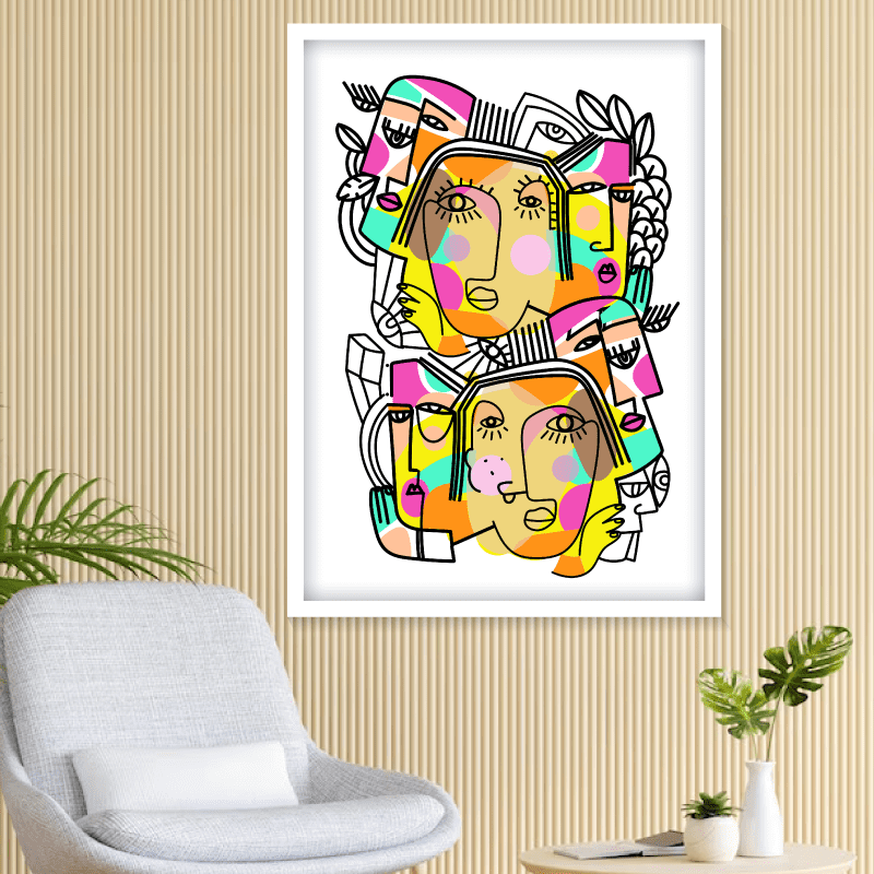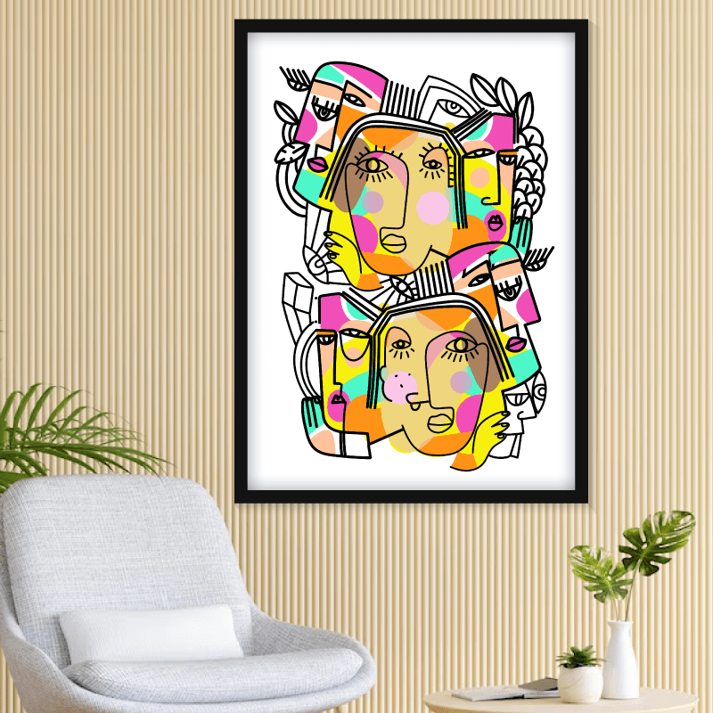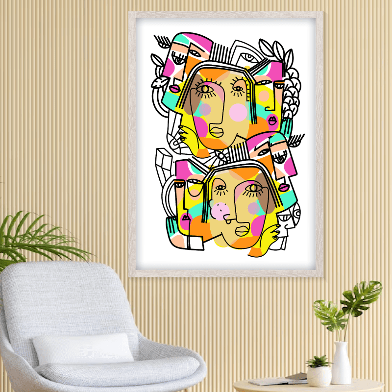 ¡Transmite! Este cuadro contagia optimismo y positividad. Celebra la belleza y la diversidad. Presenta una paleta de colores vibrantes y contrastantes; que se mezclan y fusionan con los trazos y las formas de la composición, creando una sensación de movimiento y energía.