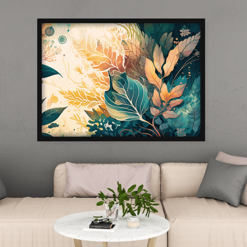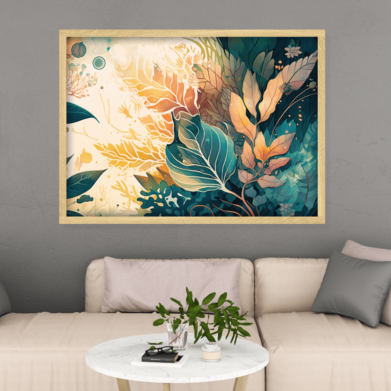 ¡Formas orgánicas! Los tonos cálidos y terrosos del otoño se mezclan en una danza de colores que cautiva la mirada. Los verdes, naranjas y amarillos radiantes e intensos de las hojas y los marrones profundos de las ramas se fusionan en una paleta cromática que transmite alegría y vitalidad. La composición se despliega en un juego de formas orgánicas que evocan movimiento y fluidez. Las líneas curvas y sinuosas de la pieza crean una sensación de armonía y equilibrio, mientras que los detalles precisos de cada elemento te invitan a perderte en la contemplación.