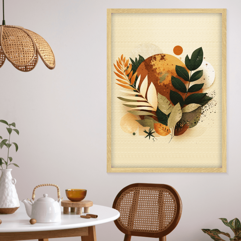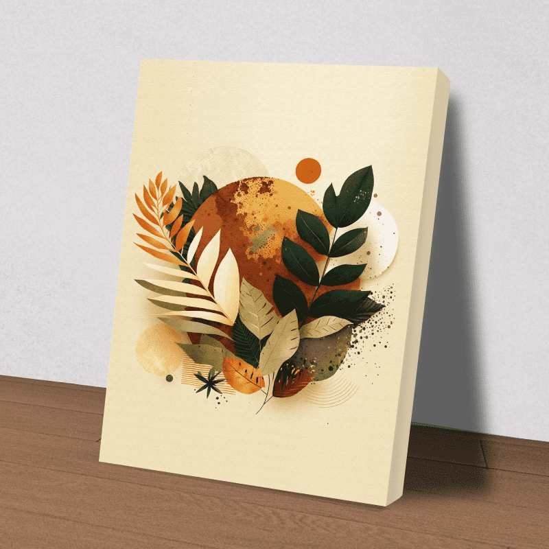 ¡Renovación! Esta impresión sobre lienzo transmite un mensaje de cambio y transformación, propio de la estación otoñal. Esta pieza captura la belleza natural de las hojas en movimiento.