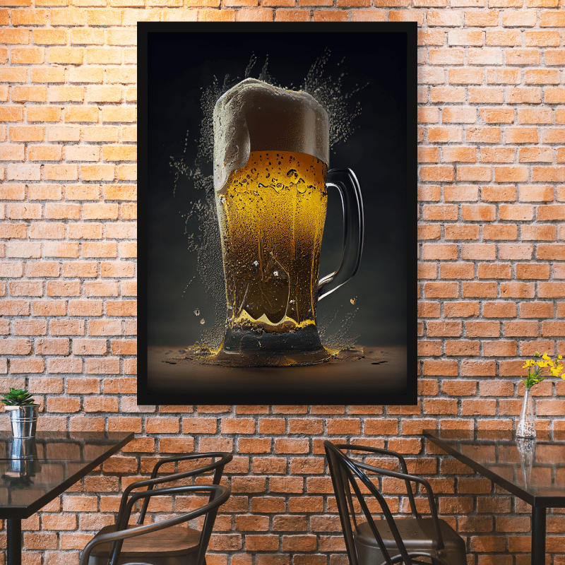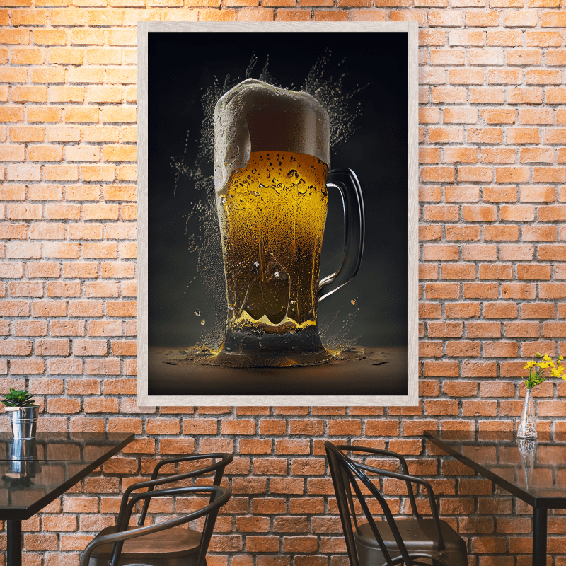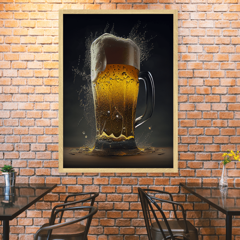 ¡Cerveza! Esta impresión sobre lienzo vibrante y atractiva, captura la esencia de esta bebida que se fabrica con granos de cebada germinados u otros cereales, cuyo almidón se fermenta en agua con levadura y se aromatiza a menudo con lúpulo.