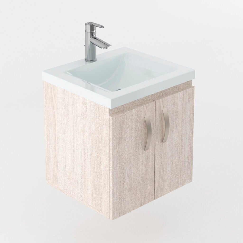 Este mueble con lavamanos es minimalista y cuenta con un amplio espacio de almacenamiento. Su estilo moderno y elegante combina perfectamente con cualquier tipo de baño. Además, su diseño práctico y funcional hace que sea una solución perfecta para mantener tus artículos de higiene personal organizados y al alcance de la mano.